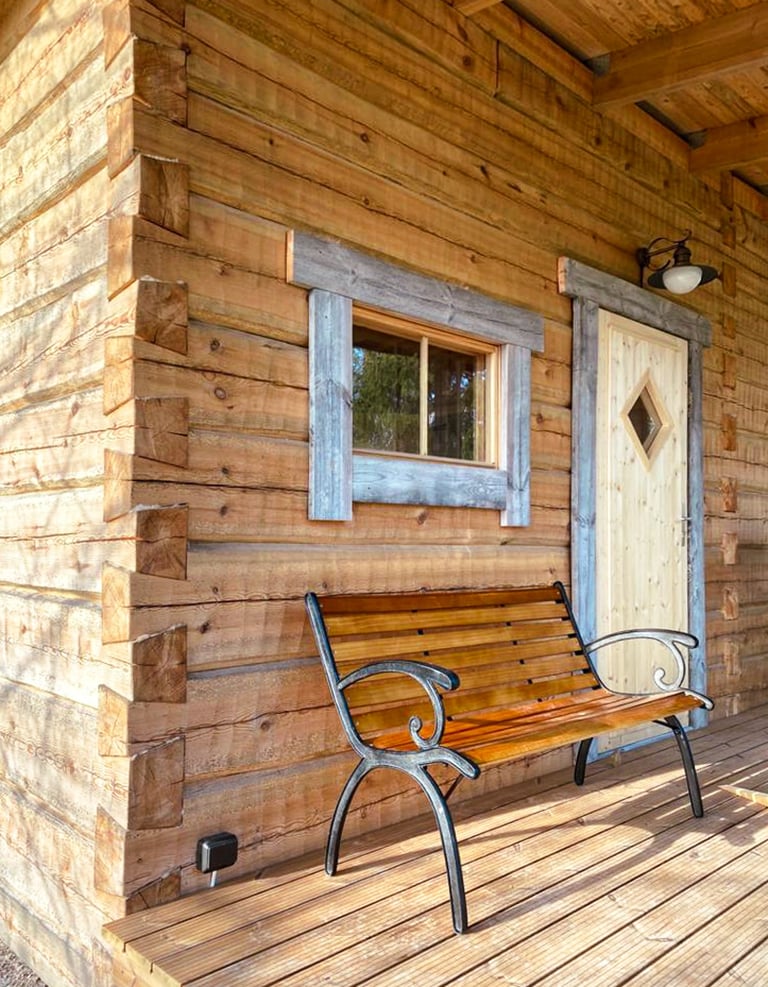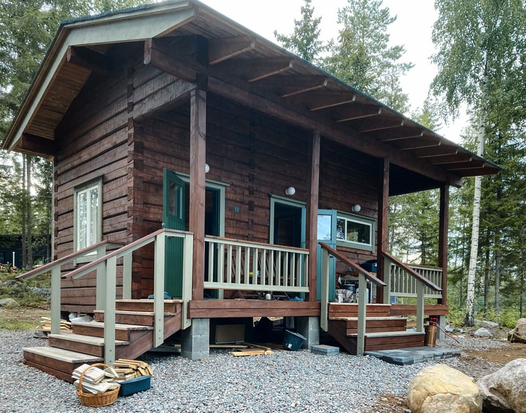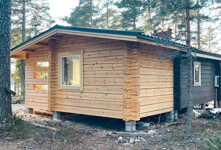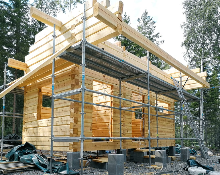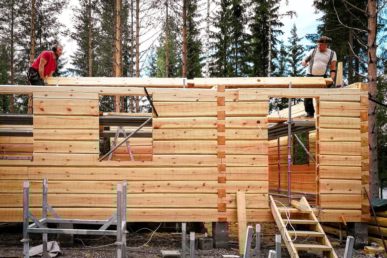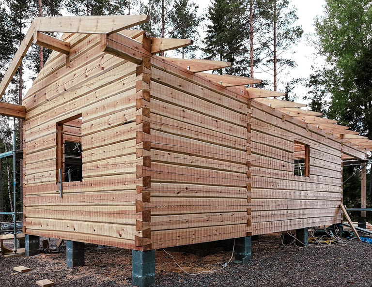 Käsin veistämäni rakennukset ovat yksilöllisiä ja ainutlaatuisia. Ne viestivät kestävästä suhteesta rakentamiseen ja luontoon. Hirsimateriaali on tarkasti valikoitua, paljon sydänpuuta sisältävää mäntytukkia.
