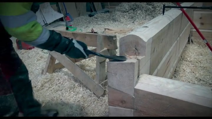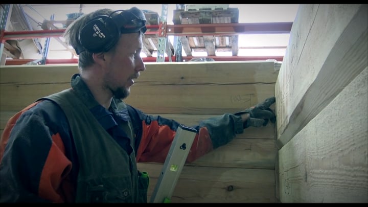 Lyhytnurkka- ja väliseinäsalvosten tekeminen hirsikehikkoon.