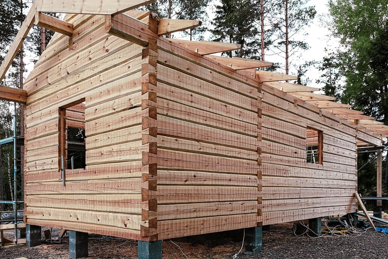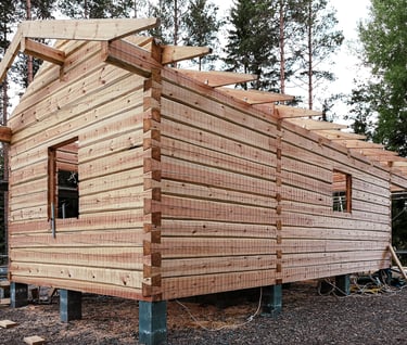 Osana toteuttamiamme projekteja myymme hirsiä, lattialankkuja, paneeleita, vuorilautoja, listoja sekä eristeenä käytettävää lampaanvillaa. Näitä ei siis tarvitse välttämättä hankkia erikseen itse.