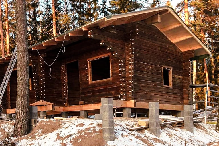 Hirsitaloihin liittyy myös paljon muitakin töitä kuin hirsikehikon tekeminen. Tällaisiin töihin kuuluvat muun muassa perustukset, alapohjan teko, lattia, seinien viimeistely, sisäkaton toteutus, eristäminen, ovien ja ikkunoiden asentaminen, portaat, terassit, ja piipun läpiviennit. Autamme kaikenlaisissa perinnerakennustehtävissä.