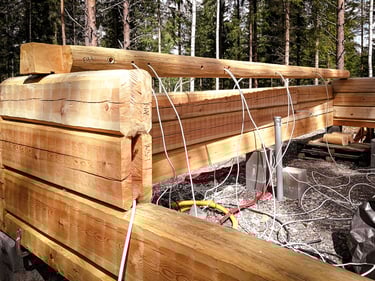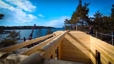 Hirsirungon lisäksi teimme kaikki muutkin rakenteet, katot, lattiat, ikkunoiden ja ovien asennuksen sekä terassit.