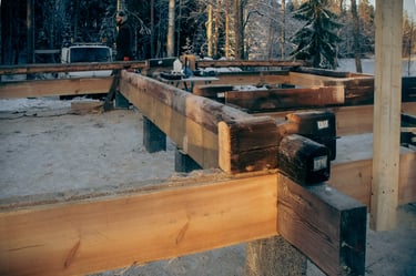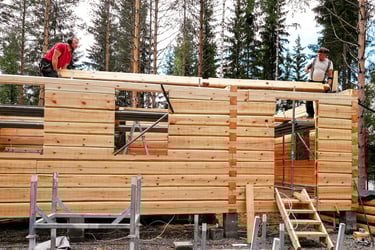 Käsinveistetyt kehikot, lattia- ja terassirungot, kattoruoteet ja vesikatto, ikkunoiden ja ovien asennukset, lattiarunkojen teko, savupiippujen asennus.