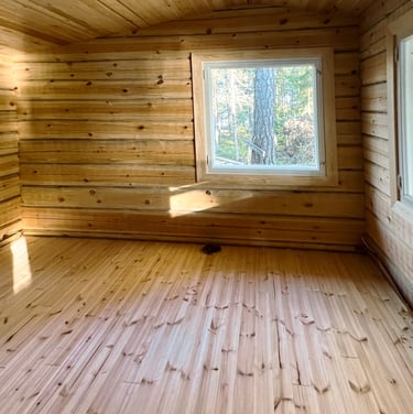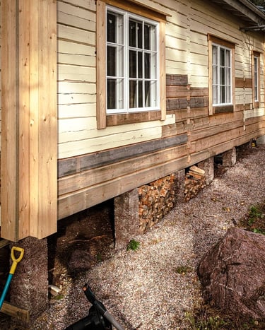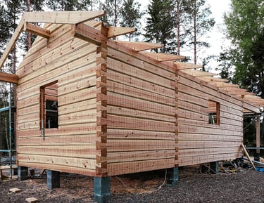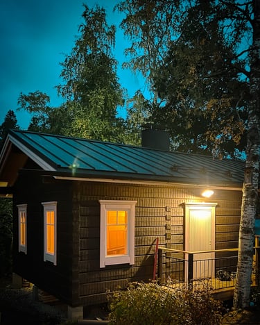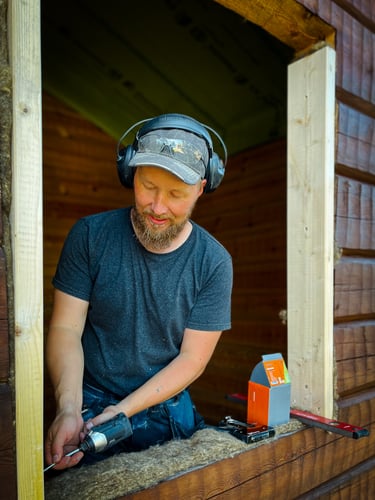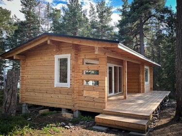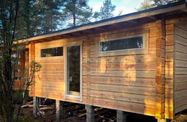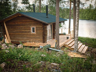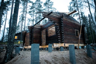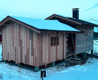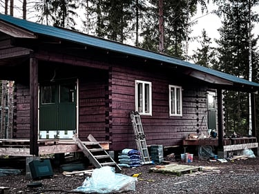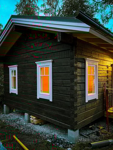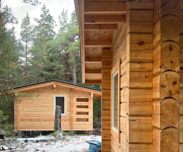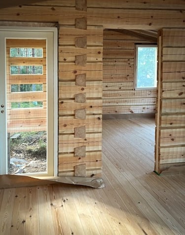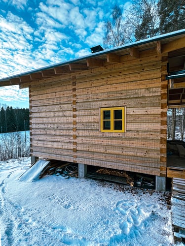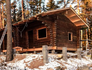 "Isovanhempien vanha saunamökki sai totisesti uuden elämän Laurin käsissä. Tuoreemman hirren piilutettu pinta on kauniissa sopusoinnussa elämää nähneiden hirsien kanssa, ja tie tähän on ollut Laurin ja tiiminsä ansioista miljoona kertaa sujuvampi - ja ennen kaikkea hauskempi- kuin olisimme konsanaan kuvitelleet."