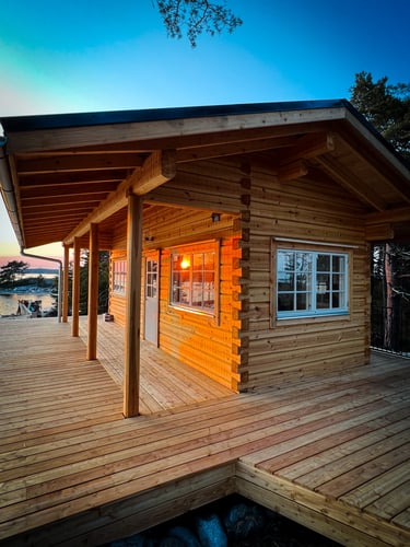 "Yli puoli vuosisataa sitten käsinveistetty saunamökkimme sai kumppanikseen yhtä huolella ja rakkaudella veistetyn uuden rakennuksen, jonka paksujen hirsiseinien suojissa kelpaa lasten mellastaa. Kaunis mökki ihastuttaa meitä joka päivä. Olemme iloisia, että löysimme juuri Laurin toteuttamaan haaveemme - jopiin kun tarvittiin sekä rautaista ammattitaitoa että hyvää huumorintajua!"