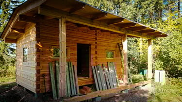 "Meillä on ihan sikatörkeen hieno sauna ja maailman siistein hirsiverstas! Suunnittelimme rakennukset yhteistyössä Laurin kanssa niin että itse piirtelin luonnokset ja Lauri kommentoi."