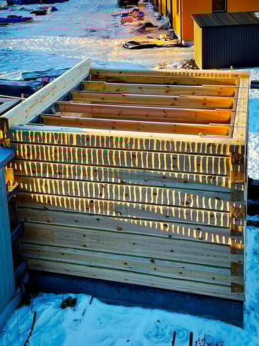 Katetun terassin osalle rakensin tilan kuivakäymälälle ja puuvarastolle.