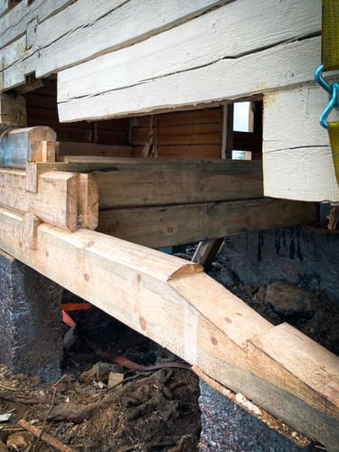 Hirsirakennuksen siirto Mäntsälään. Rakennuksen merkitseminen ja purku. Uudelleen kasaus ja korottaminen.