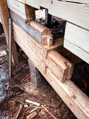 Lauri auttoi suunnittelussa ja vastasi siirron kaikista vaiheista: vanhan rakennuksen mittauksesta, hirsien numeroinnista ja laputuksesta, purkutöistä ja hirsien siirrosta. Pystytystyön seuraaminen oli vaikuttavaa. Tällainen on siirtoprojekti on jatkuvaa ongelmanratkaisua: vanhojen hirsien työstöä, uusien hirsiaihioiden hankintaa ja veistoa, yhteensovittaminen ja tilkitsemistä.