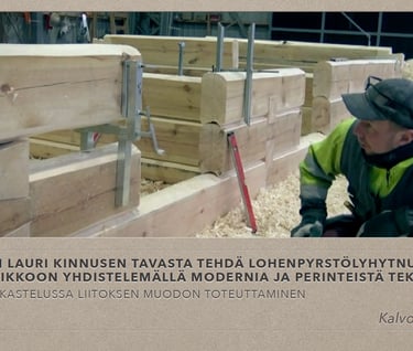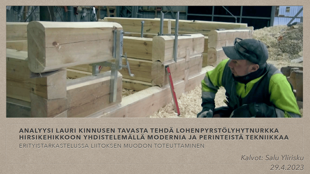 Lyhytnurkka- ja väliseinäsalvosten tekeminen hirsikehikkoon.